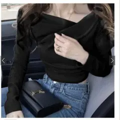 若干フワッとしつつも落ち感のある素材で、上質な雰囲気のトップス。