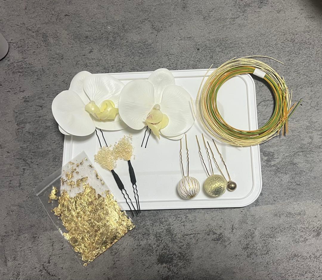 人工蘭の花 ヘアアクセサリーセット 成人式髪飾り 水引き 金箔 胡蝶蘭 造花