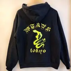 WTAPSのブラックパーカー、ジッパー付きフードと裾ゴム入りデザインが特徴。