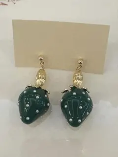 ハンドメイド 花入り緑色ピアス