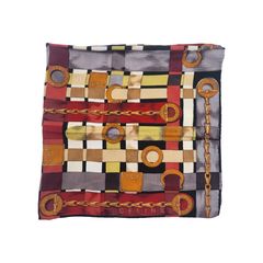 セリーヌ スカーフ 大判 馬車 ネイビー×ブラウン コットン