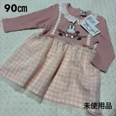 ウサギの刺繍と花柄の可愛いオーバーオール。