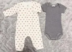 プチバトー・長袖ロンパース2点セット(グレー・ホワイト)