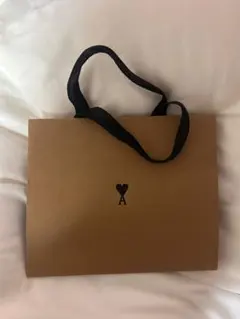 ブラウンの紙製トートバッグ、amiのロゴ入りでスタイリッシュ。