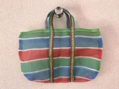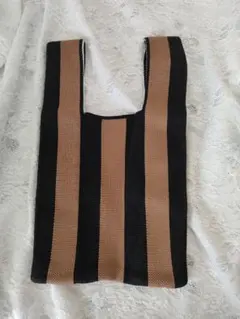 2、3回使用しました。状態は綺麗です。黒とオフホワイトのストライプのニットバッグになります。縦21(持ち手を除く)横21,持ち手12になります。