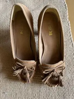 R&E ヒール パンプス ベージュ スエード オフィス 結婚式 入学式