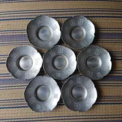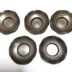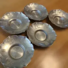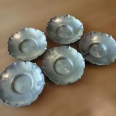 A133 【月天泰款】 清代 錫製茶托 5点セット 重184g 一点凹みあり