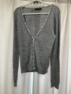 ふんわりとしたシャギー感が可愛い、ベージュカラーのニットカーディガンです。軽くて柔らかい素材感で、羽織りやすく女性らしい印象の一枚。左袖上部にうっすらと毛羽立ちが見られますが、着用時に目立つ程ではなく、全体的に綺麗な状態です。