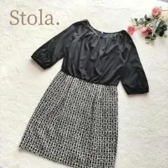 ★Stola. ストラ レディース 七分袖ひざ丈ワンピース ウール混 日本製 M