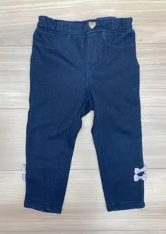 柔らかいフリース素材の薄いピンクのパンツ、リボン付きで可愛らしいデザイン。