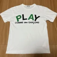 コムデギャルソン、サイズXS、PLAY ホワイト Tシャツ グリーンハート刺繍