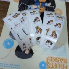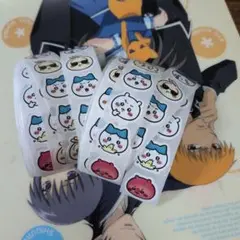 カラフルなスイーツデザインのにゃんにゃんにゃんこ、くまのプーさん、ちいかわ、トロ、スティッチなどの、ロールシール50枚分おすそ分け。