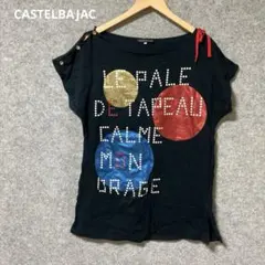 バタフライプリントオフショルダーTシャツ