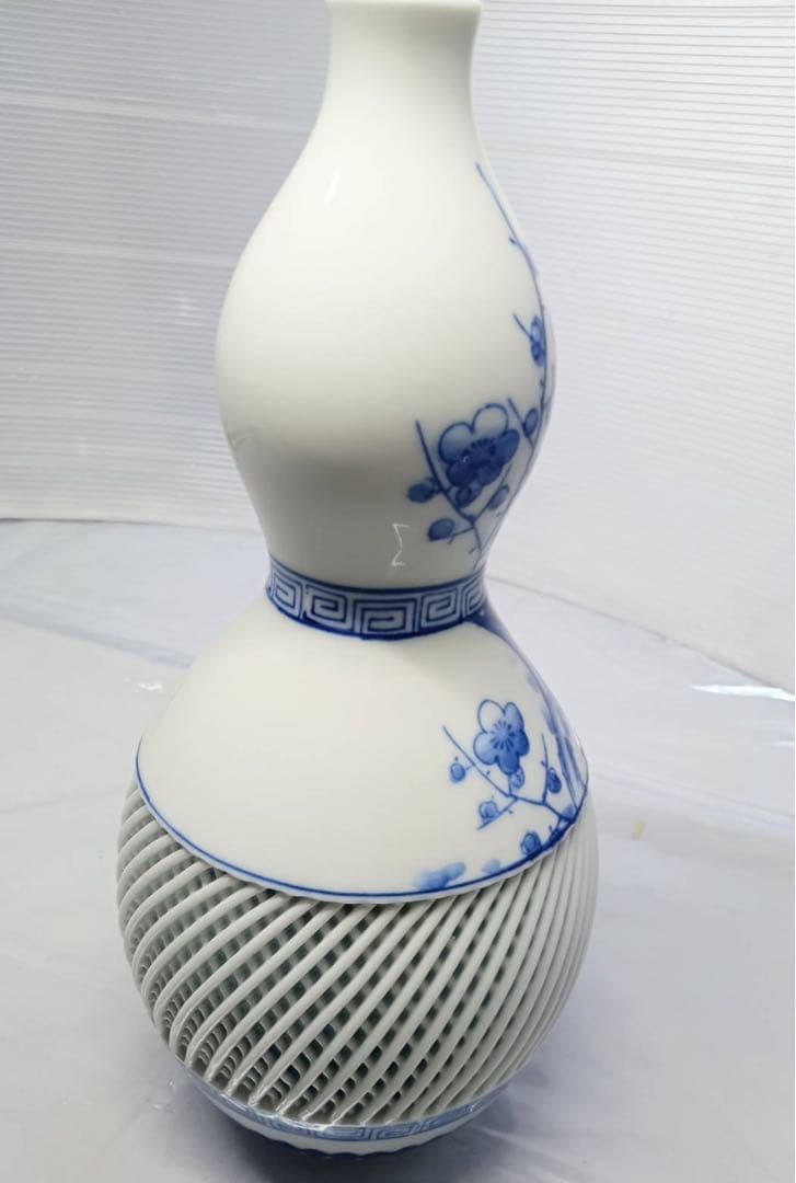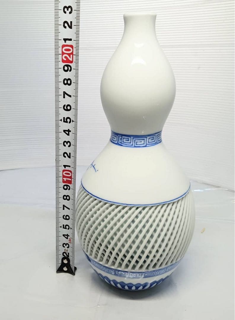 有田焼 琴峰 花瓶 透かし網目花瓶 花器 ひょうたん型 一輪挿し 伝統工芸 骨董