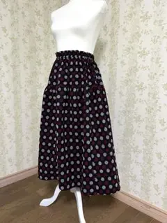 古布 藍染木綿 色付き絣 ギャザーロングスカート ハンドメイド