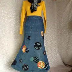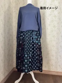 古布藍染木綿、雪ん子 絣などでシンプルなロングスカートを作りました。