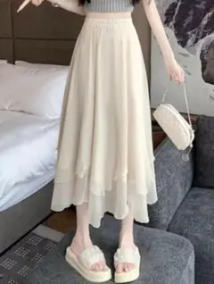 軽やかなシフォン素材の3層フレアスカート、エレガントなグレー