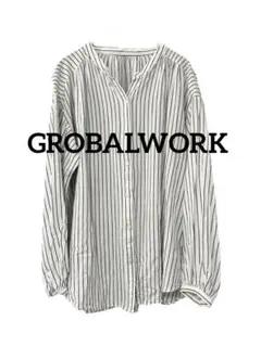 レディースL 長袖襟つきシャツシャツ ストライプ GLOBAL WORK グレー