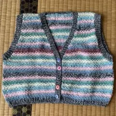 ハンドメイド? ボーダー柄 ベスト マルチカラー系