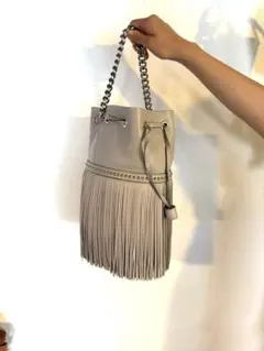 J&M DAVIDSON グレー レザーショルダーバッグ