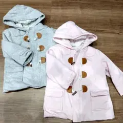 桜色のようなピンクが可愛い中綿コートです。トイザらスで買いました。フードは取り外しできません。