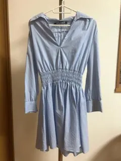 ZARA 水色 ストライプ シャツワンピース