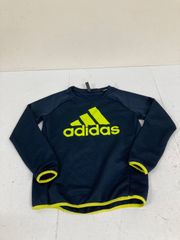 adidasのロゴが特徴的な140cmサイズのトレーナー。水色。