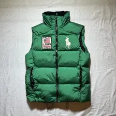 【定番モデル】ラルフローレン ダウンベスト ボーダー 黄色 ネイビー Mサイズ