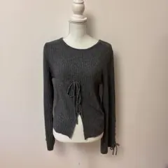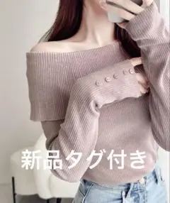 新品タグ付きmily bilet 配色パールボタンリブニットペプラムトップス