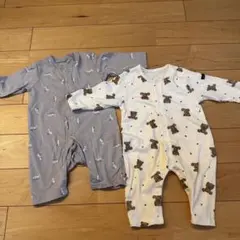 セット オーバーオール サロペット ボーダー 長袖 くま ふわふわ
