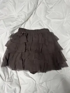 ベージュ系のチェック柄ミニスカート、ウエストはゴム仕様。
