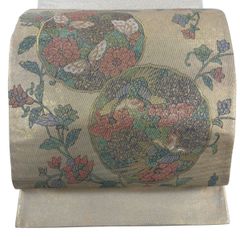 風神 袋帯 お太鼓柄 正絹 螺鈿 鹿の子 ツーシーズン 未使用に近い イ6365
