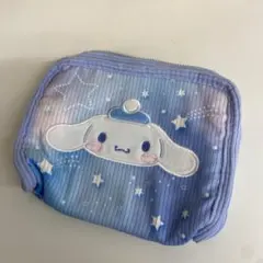 Cinnamorollの可愛いイラストが施されたピンクのポーチ。