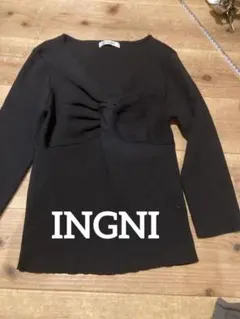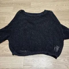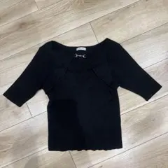 1662 イング 襟付リブニット 五分袖 黒 白 パワーショルダー M