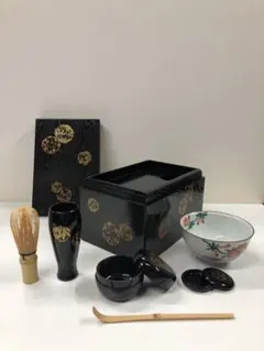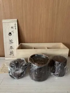 - セット内容: 茶器セット(茶托3枚、茶櫃、茶筒、茶こぼし、茶匙、蓋付き容器)