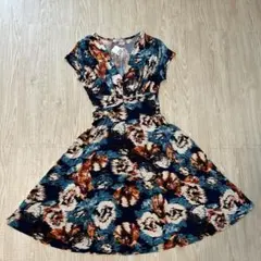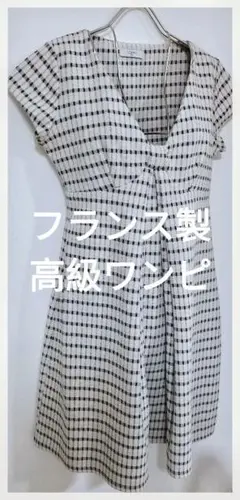 【美品】 エジェリ 半袖 ワンピース 花柄 リボン付き 伸縮性 フランス製 黒