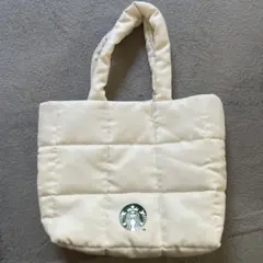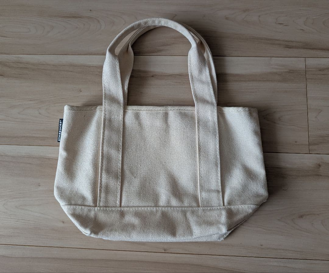 スターバックスのアイボリー色トートバッグセット、ロゴ付き。