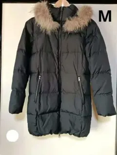 ブラウン色のフード付きダウンジャケット、Lサイズ、ポケット付きで暖かい。