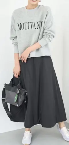 裾に向かって広がるフレアシルエットに、ウエストゴムでリラックスしたはき心地が魅力です。