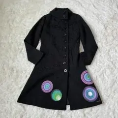 【極美品】Desigual デシグアル 刺繍混チャイナ調Aラインロングコート スタンドカラーコート ジャガード 総柄 マルチカラーです♪