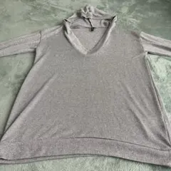 フード付きのライトグレーのクロップドパーカー、スウェット素材で快適な着心地。