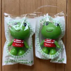 KERO KOROの緑色のマスコット2個セットで、可愛らしいデザインが特徴です。