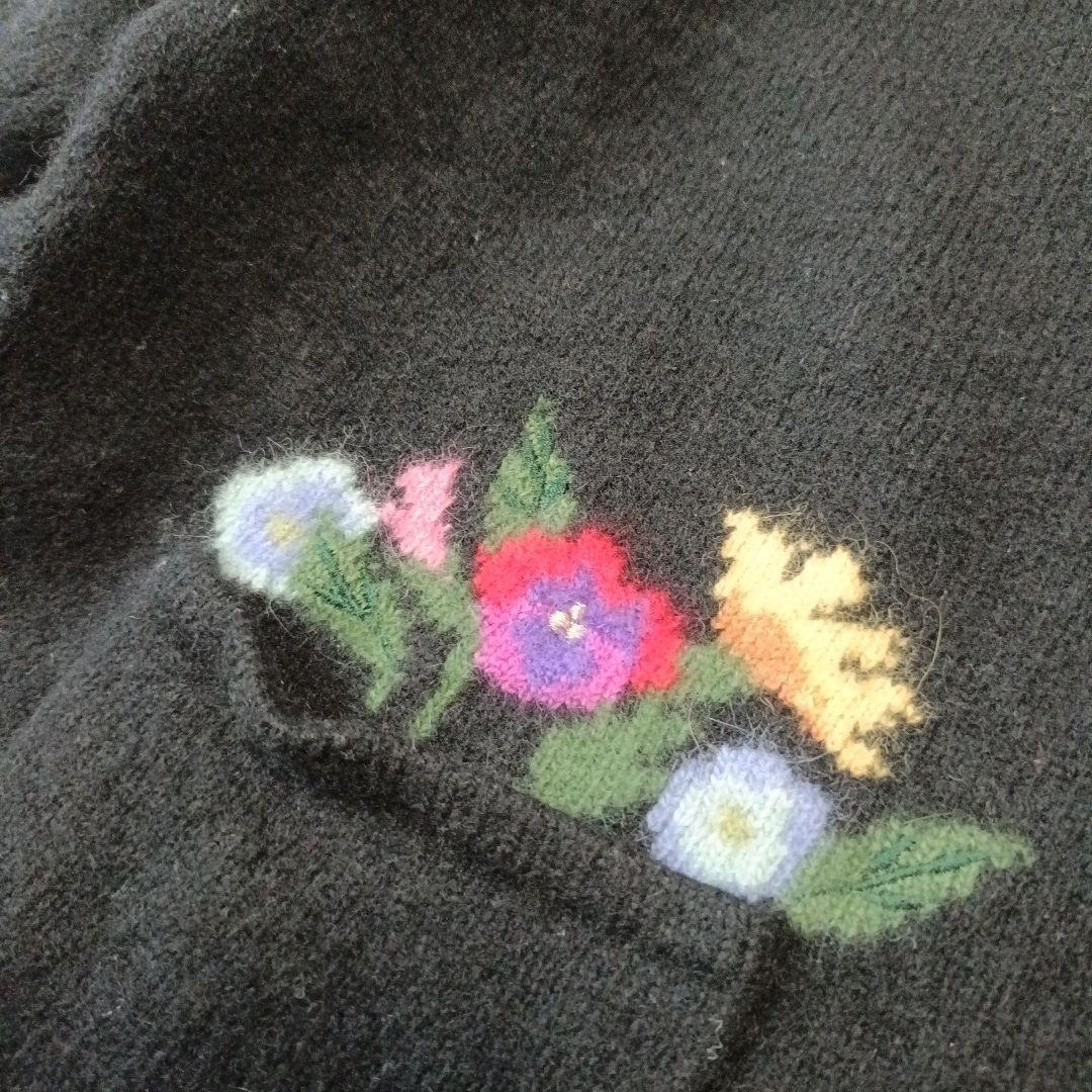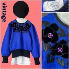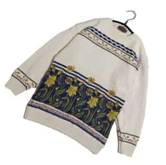 美品 ヴィンテージ 花 模様 プチネック モックネック ウール セーター ニット