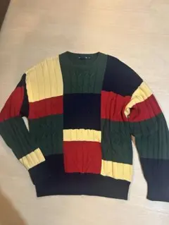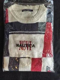 ノーティカ チェック柄 シンプル 刺繍ロゴ ニット 長袖 セーター 古着L