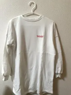 ホワイト地にグリーンとブラックのストライプデザインの長袖Tシャツ。