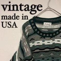ヴィンテージ デザインニット セーター 3D 総柄 幾何学 90s レトロ