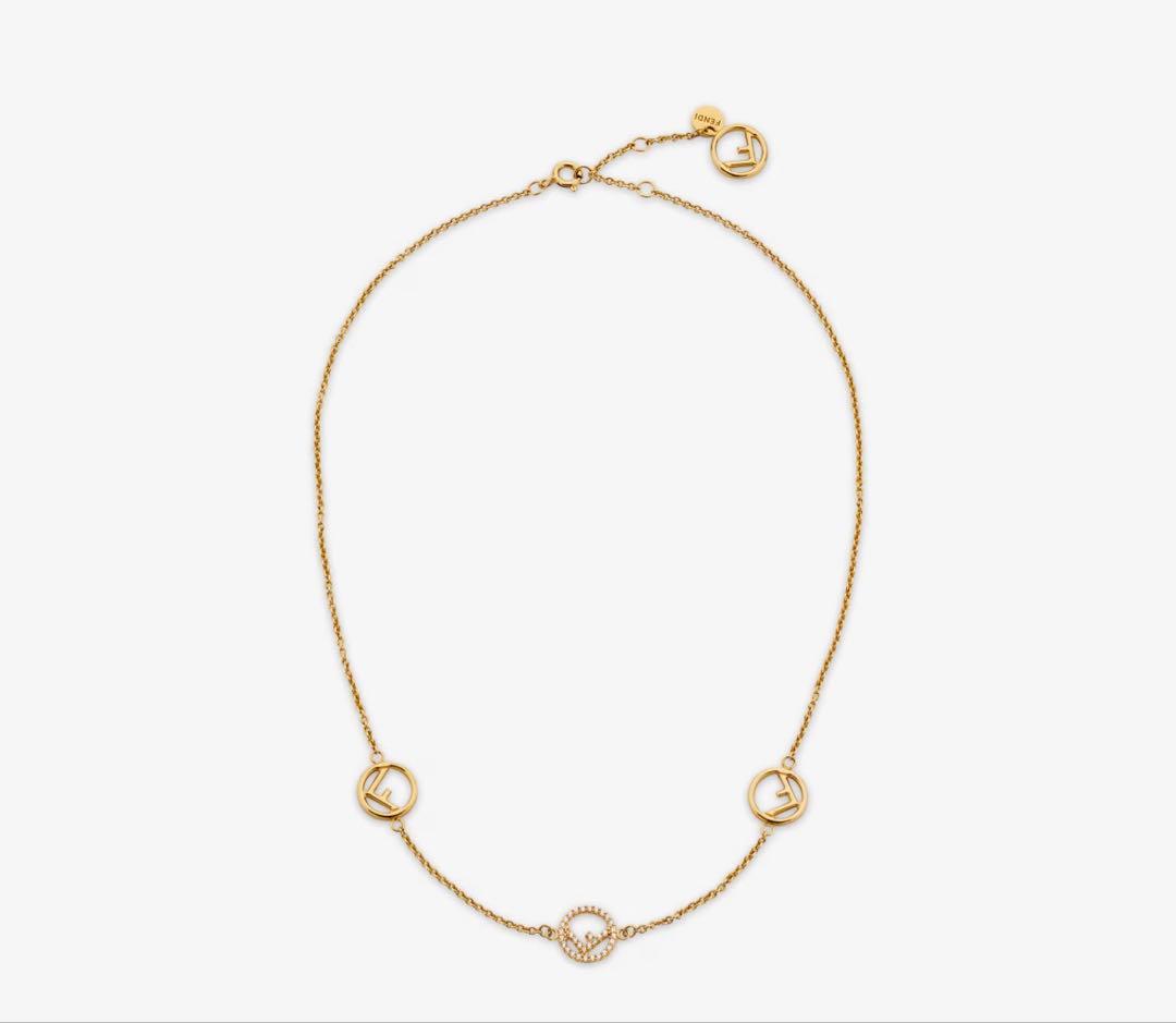 Fendiのロゴモチーフが特徴のゴールドトーンネックレス。