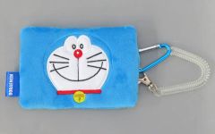 ドラえもんのデザインが特徴的なプラスチック製の貯金箱