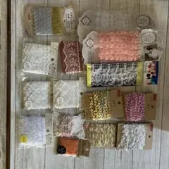 手芸用のレース、リボン、麻山道テープなどのセットです。