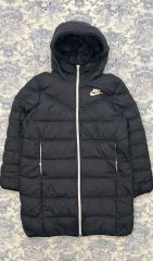 フード付きマスタードジャケットとNikeのダウンジャケット2点セット。